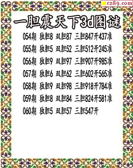 一膽震天下獨膽2021060期3d圖謎(原創)