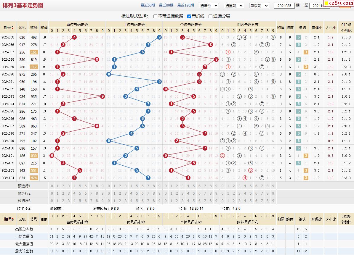 105期體彩排列3近期歷史號碼圖表