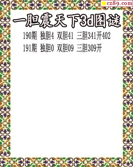 一膽震天下獨膽2025191期3d圖謎(原創)