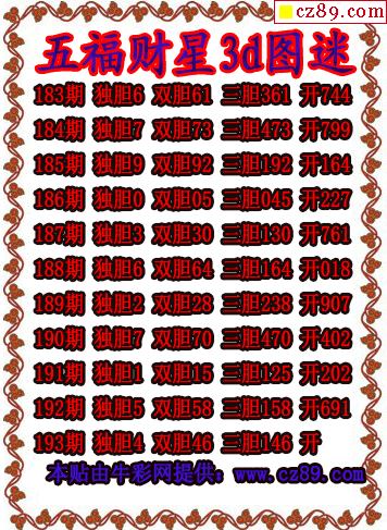五福財星三膽2025193期3d圖謎(原創)