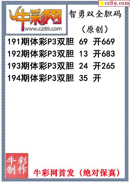智勇雙全雙膽194期今日P3圖迷(原創)