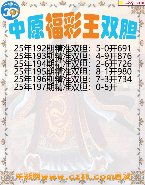 中原福彩王雙膽197期3d圖謎