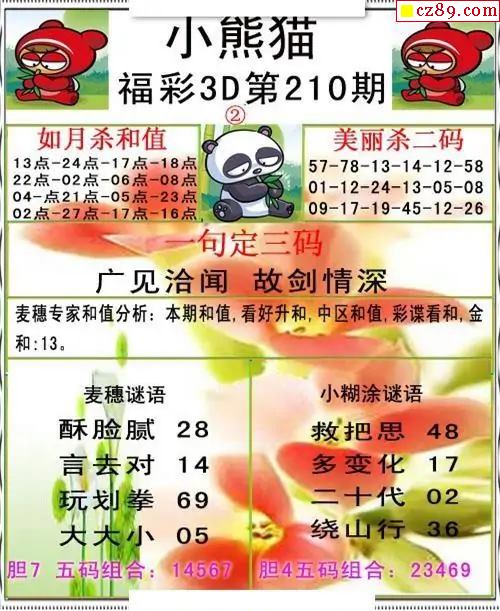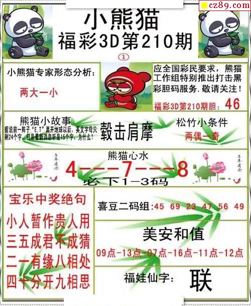 小熊貓彩報2025210期3d圖謎