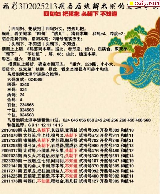 馬后炮解25年213期3d太湖釣叟之 四旬婦