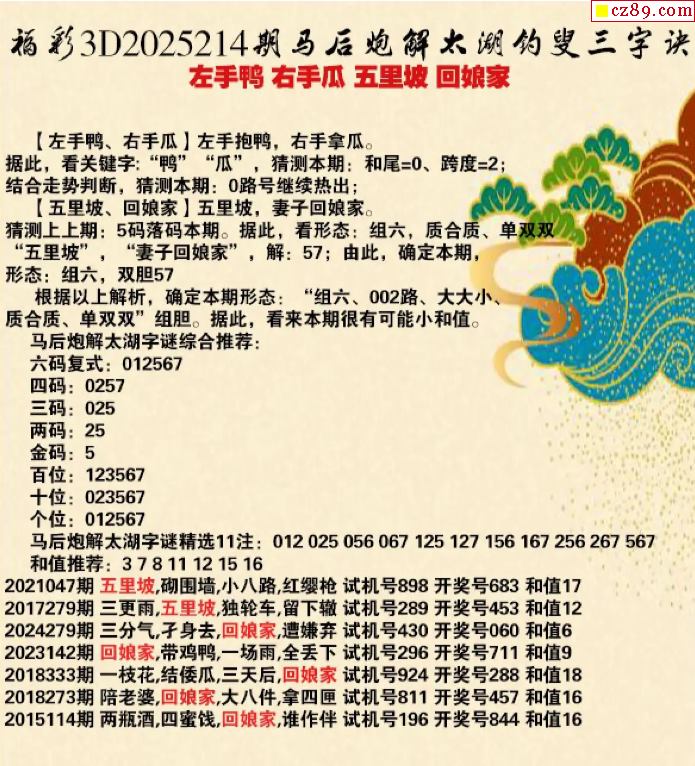 馬后炮解25年214期3d太湖釣叟之 回娘家