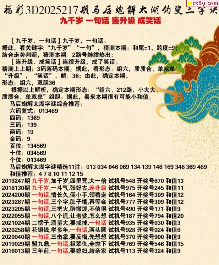 馬后炮解25年217期3d太湖釣叟之 九千歲