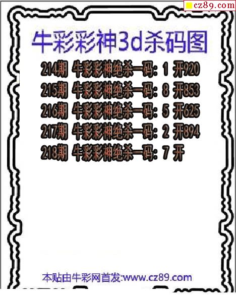 牛彩彩神殺碼2025218期3d圖謎(原創)