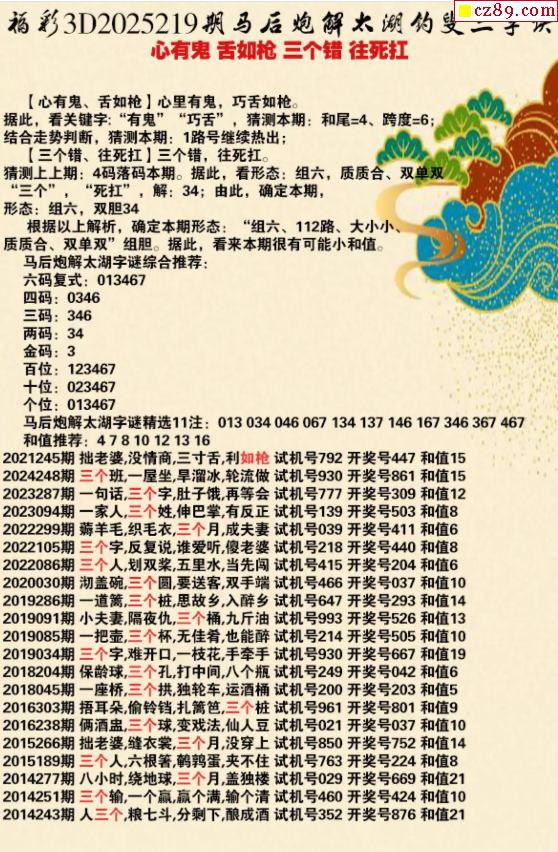 馬后炮解25年219期3d太湖釣叟之 心有鬼