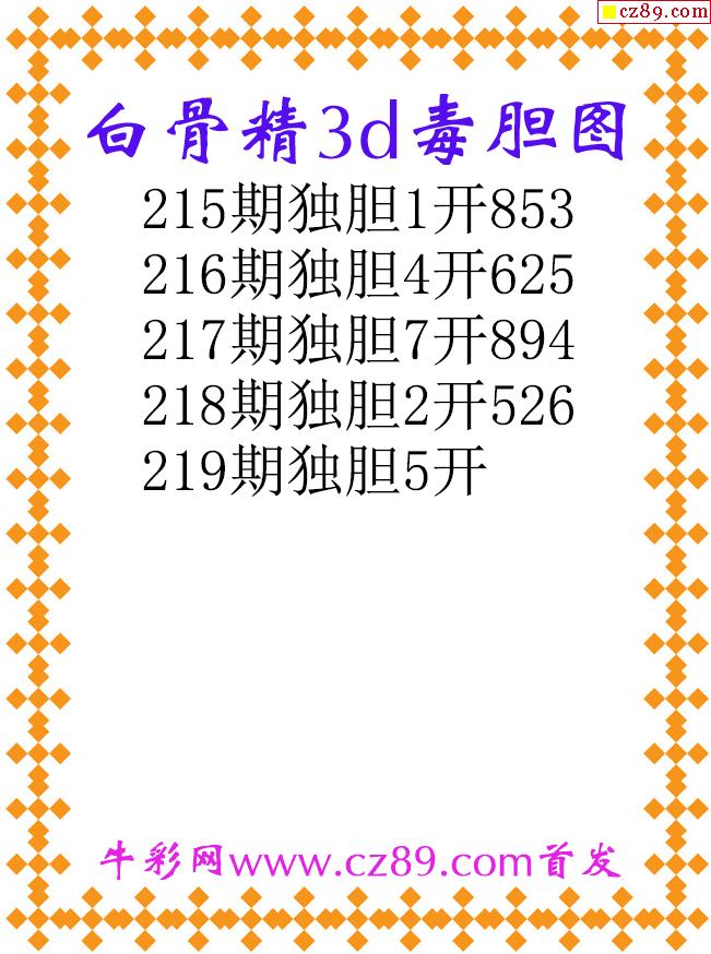白骨精獨膽25219期3d原創圖謎