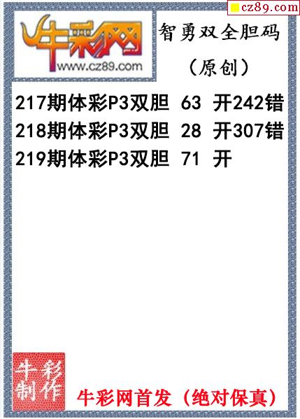 智勇雙全雙膽219期今日P3圖迷(原創)