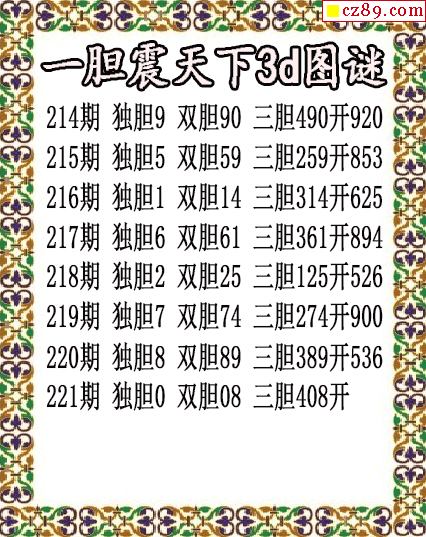 一膽震天下獨膽2025221期3d圖謎(原創)