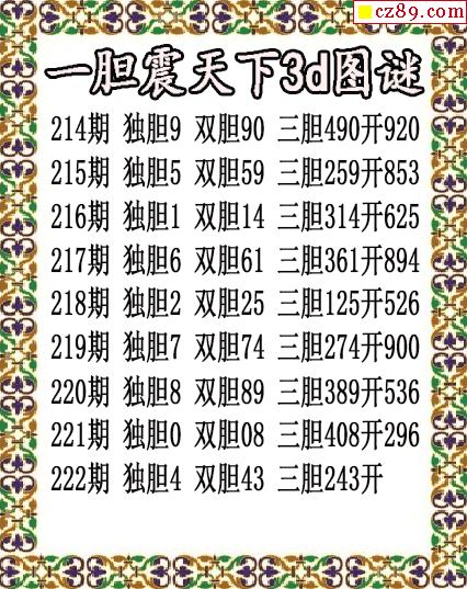 一膽震天下獨膽2025222期3d圖謎(原創)