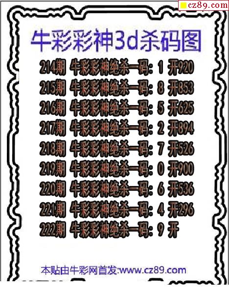 牛彩彩神殺碼2025222期3d圖謎(原創)