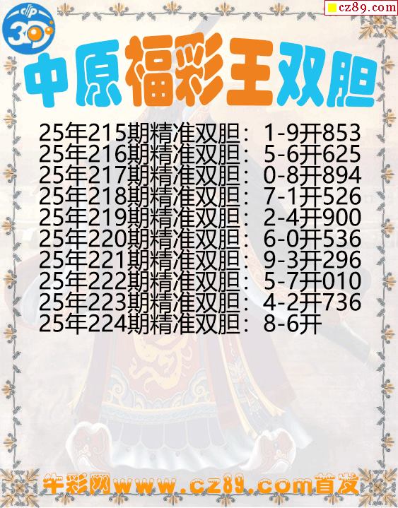 中原福彩王雙膽224期3d圖謎