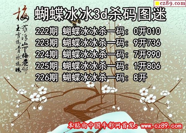 蝴蝶冰冰殺碼2025226期3d圖謎(原創)