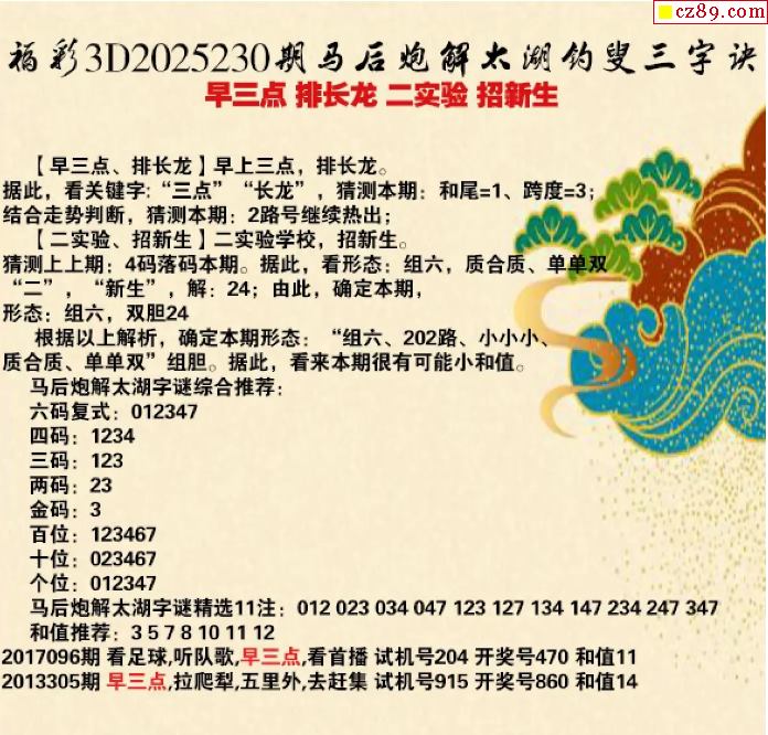 馬后炮解25年230期3d太湖釣叟之 早三點
