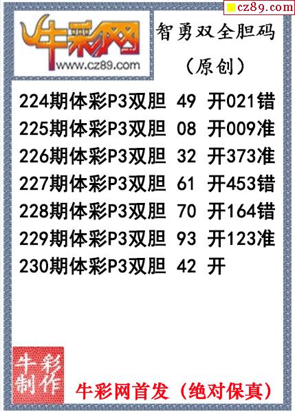 智勇雙全雙膽229期今日P3圖迷(原創)