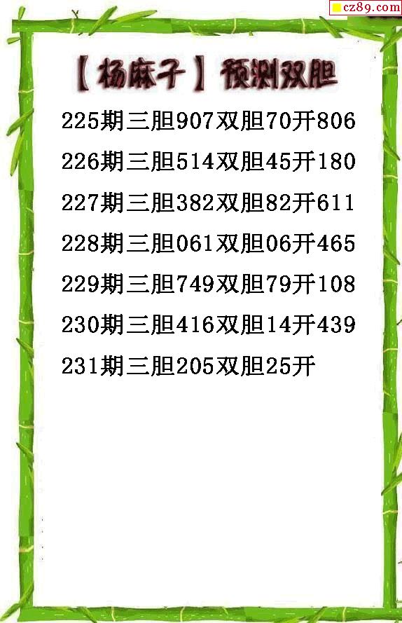 楊麻子雙膽2025231期3d圖謎