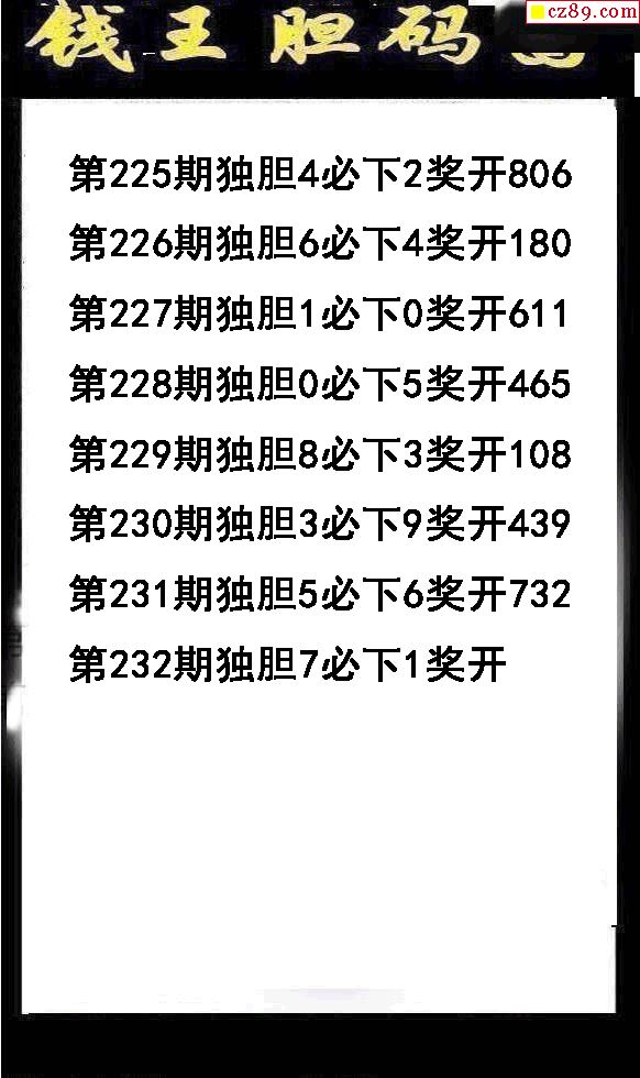 錢王膽碼2025232期3d圖謎