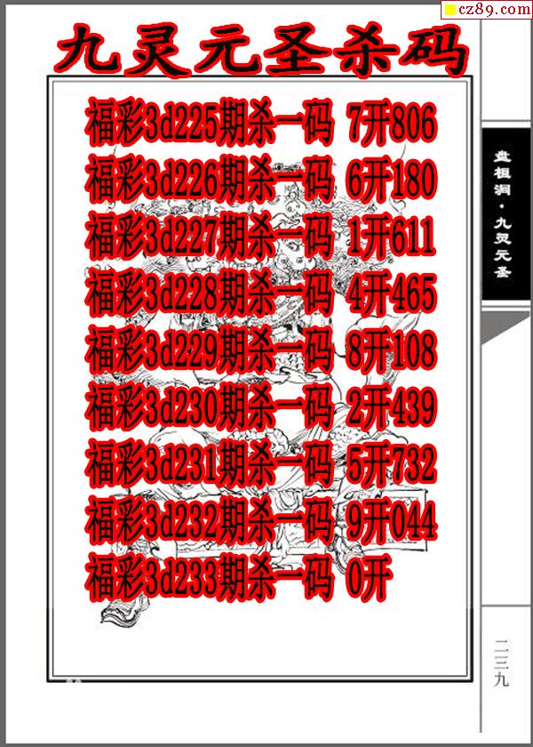 九靈元圣殺碼2025233期3d圖謎(原創)