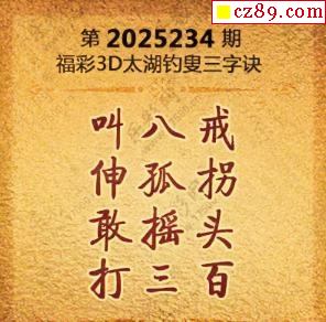 25年234期3d字謎太湖釣叟三字訣《保真》