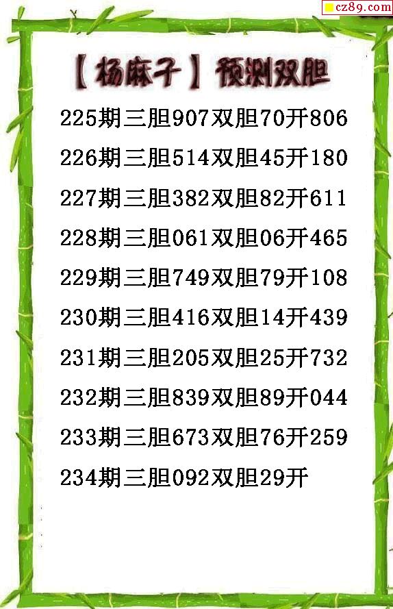 楊麻子雙膽2025234期3d圖謎