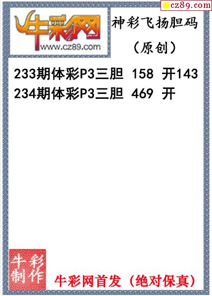 神彩飛揚三膽234期體彩P3圖謎(原創)