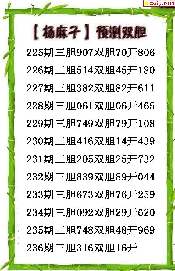 楊麻子雙膽2025236期3d圖謎