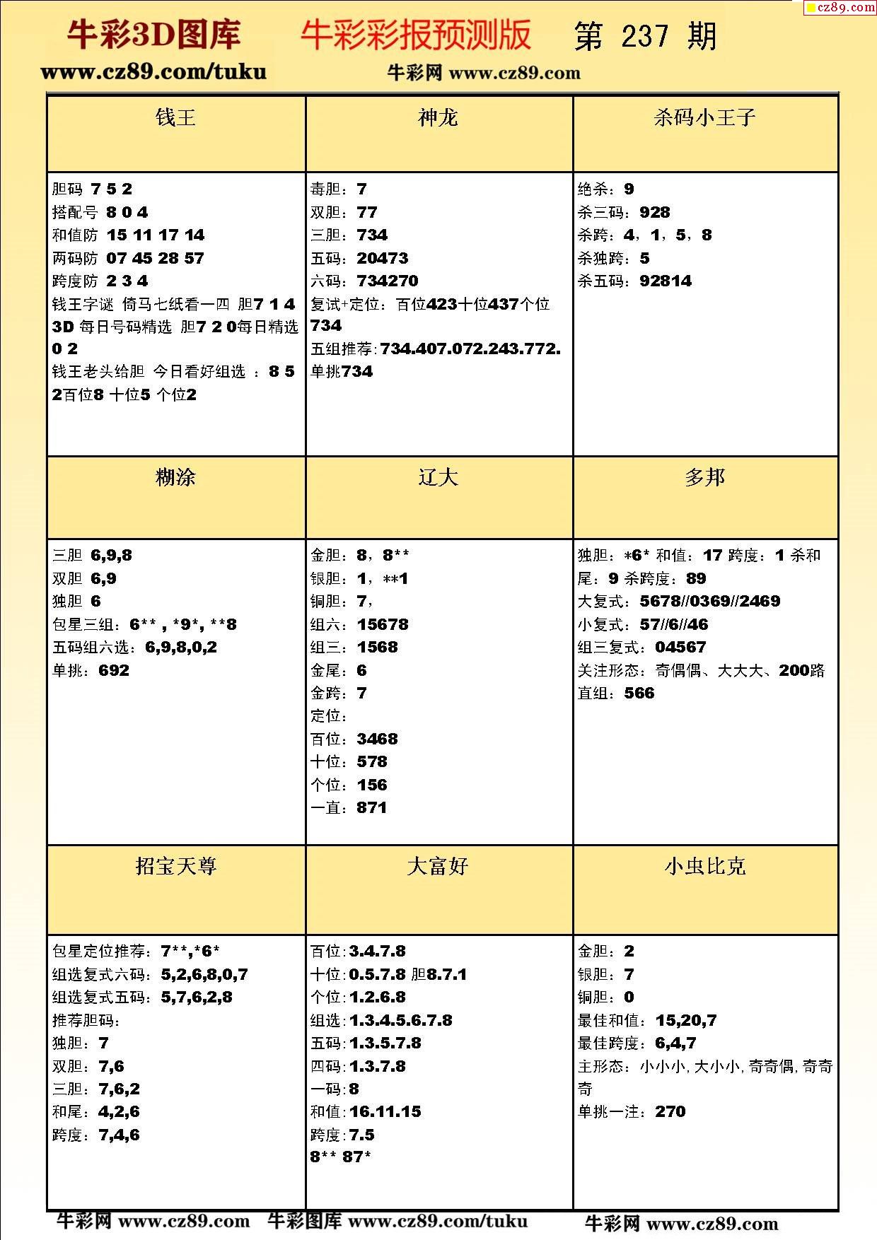 牛彩版3D預(yù)測彩報圖25年237期打印版