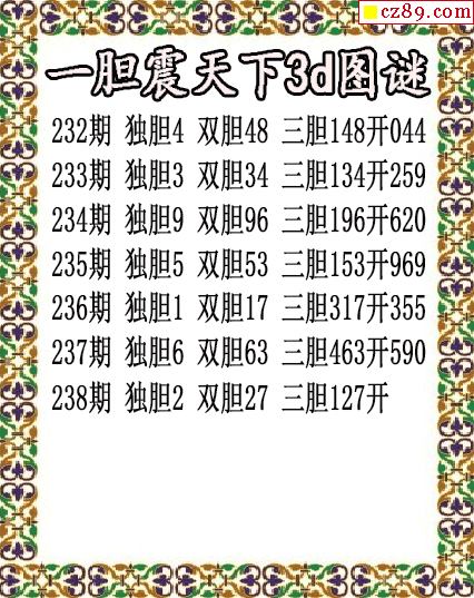 一膽震天下獨膽2025238期3d圖謎(原創)