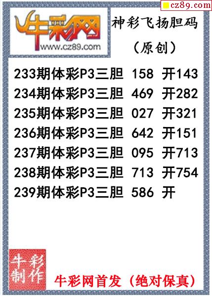 神彩飛揚三膽239期體彩P3圖謎(原創)
