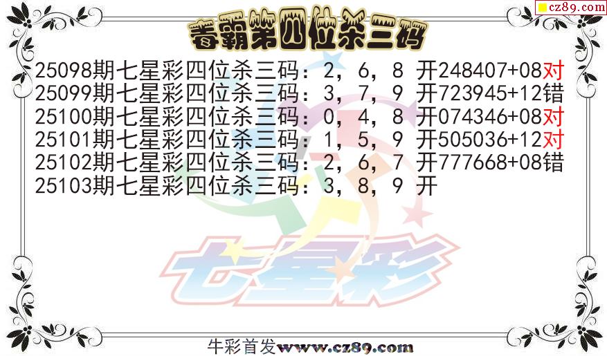 七星彩2025103期毒霸第四位殺三碼圖迷