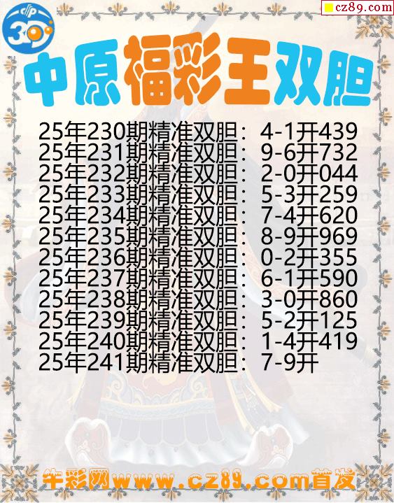 中原福彩王雙膽241期3d圖謎