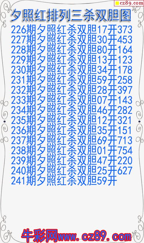 25年241期夕照紅排列三殺雙膽