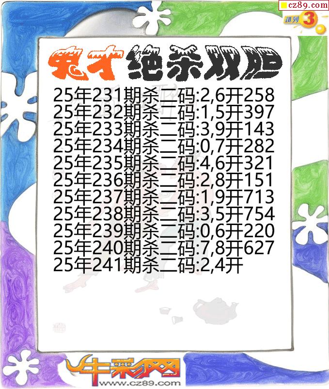 鬼才絕殺雙膽241期體彩P3圖謎
