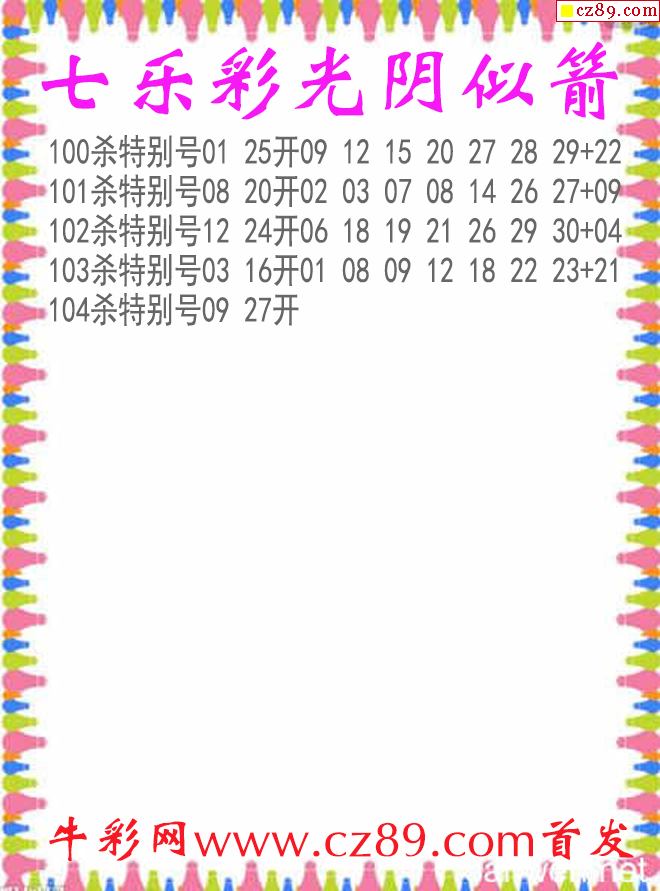 七樂彩2025104期光陰似箭殺碼圖謎