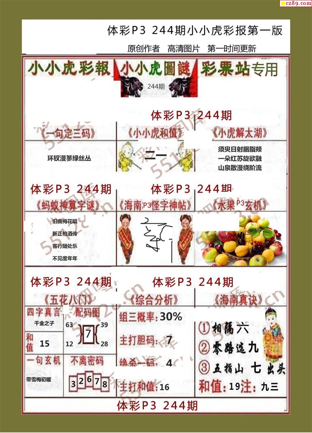 小小虎彩報244期體彩p3圖謎