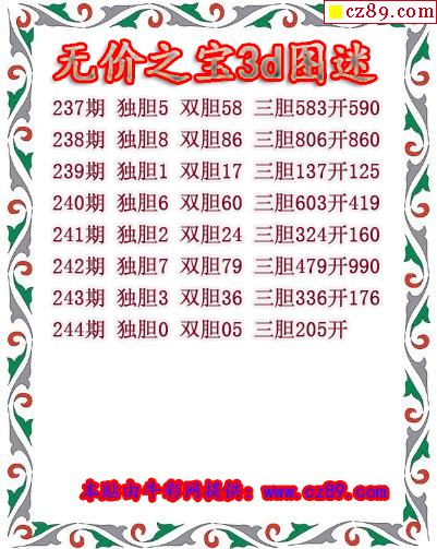無價之寶送膽2025244期3d圖謎(原創)