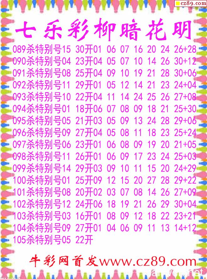 七樂彩2025105期柳暗花明殺碼圖謎