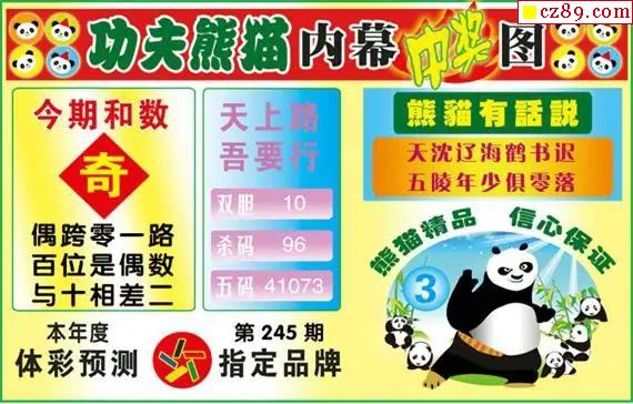 體彩P325年圖迷245期 功夫熊貓內幕中獎圖
