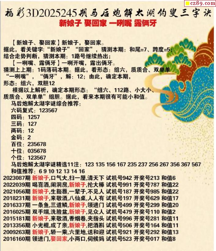 馬后炮解25年245期3d太湖釣叟之 新娘子