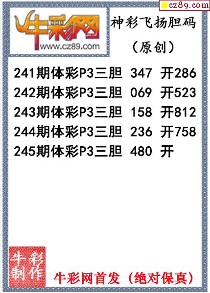神彩飛揚三膽245期體彩P3圖謎(原創)