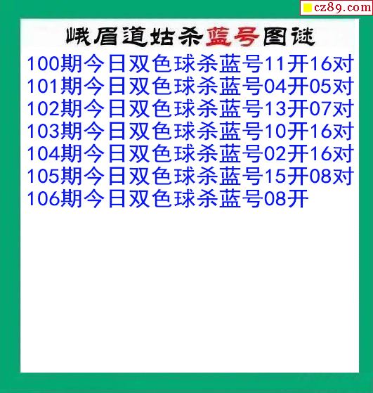 峨眉道姑殺藍號106期雙色球圖謎