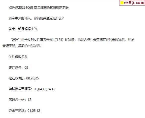 25年福彩雙色球106期 群星腦筋急轉彎定龍頭字謎