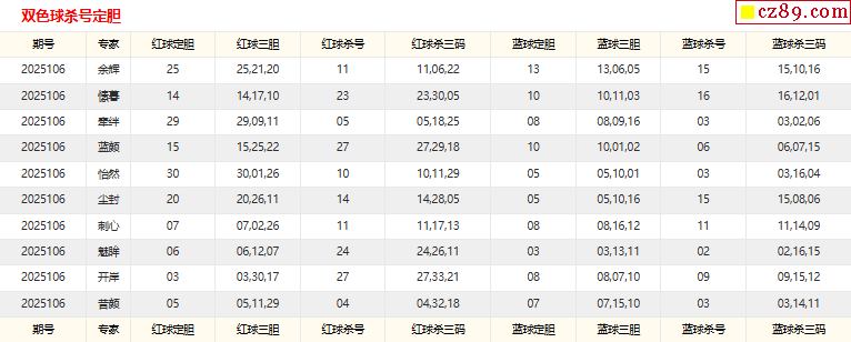 雙色球106期 彩寶貝專家紅藍球殺號預測圖表