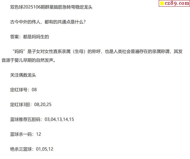 流年25年106期雙色球動腦筋急轉彎龍頭字謎