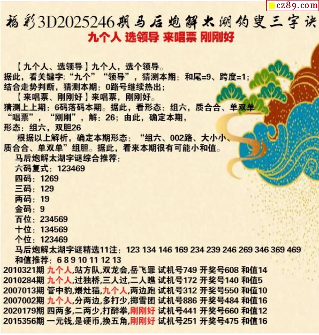 馬后炮解25年246期3d太湖釣叟之 剛剛好
