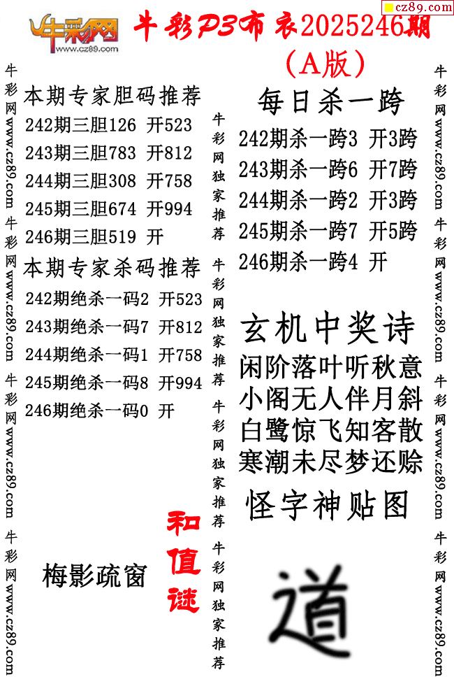 牛彩P3布衣25年246期AB版圖謎(精華版)