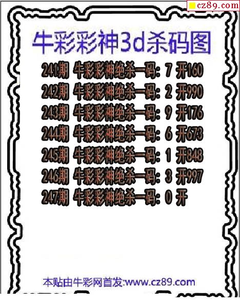 牛彩彩神殺碼2025247期3d圖謎(原創)
