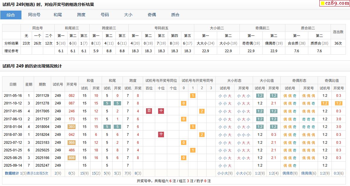 247期福彩3D試機號249對應開獎號的組選分析結果